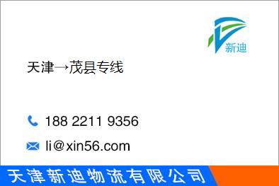 天津新迪物流可承接天津至茂县各地整车零担,长短途业务。公司内部采用微机化管理系统,对货物全程监控,为您提供天津至茂县物流公司货物查询,业务咨询,信息反馈等服务。实现了诚信,准时,安全,便利的服务目标,赢得了广大茂县客户的支持。天津到茂县物流专线为工厂、贸易商、批发商等货主提供整车、零担、大件运输、普快特快、搬家搬厂、回程车调用等全方位的物流服务。在天津和平区、河东区、河西区、南开区、河北区、红桥区、塘沽区、汉沽区、大港区、东丽区、西青区、津南区、北辰区、武清区、宝坻区、宁河县、静海县、天津市:和平区、河东区、河西区、南开区、河北区、红桥区、塘沽区、汉沽区、大港区、东丽区、西青区、津南区、北辰区、武清区、宝坻区、宁河县、静海。都可以上门提货,送货到茂县指定地点。新迪物流是中国太平洋财产保险公司货运险的签约公司,是天津市物流行业协会理事单位,您可以放心地把货托付给天津新迪物流!为了方便广大客户从天津到茂县的不同运输时效和物流成本要求,以此来降低从天津到茂县运输的物流成本,提高天津到茂县的物流效率,以便为茂县新老客户提供更加完善的从天津到茂县的一站式优质物流服务!公司天天发车,能够实现急速送达到